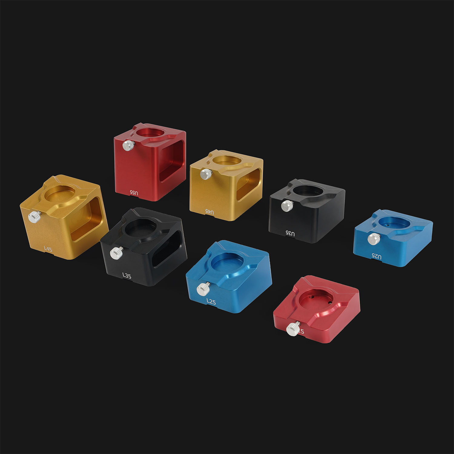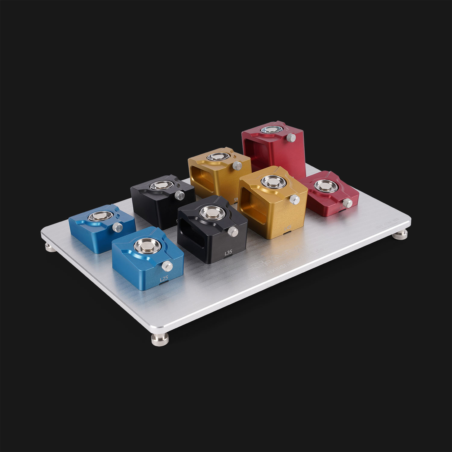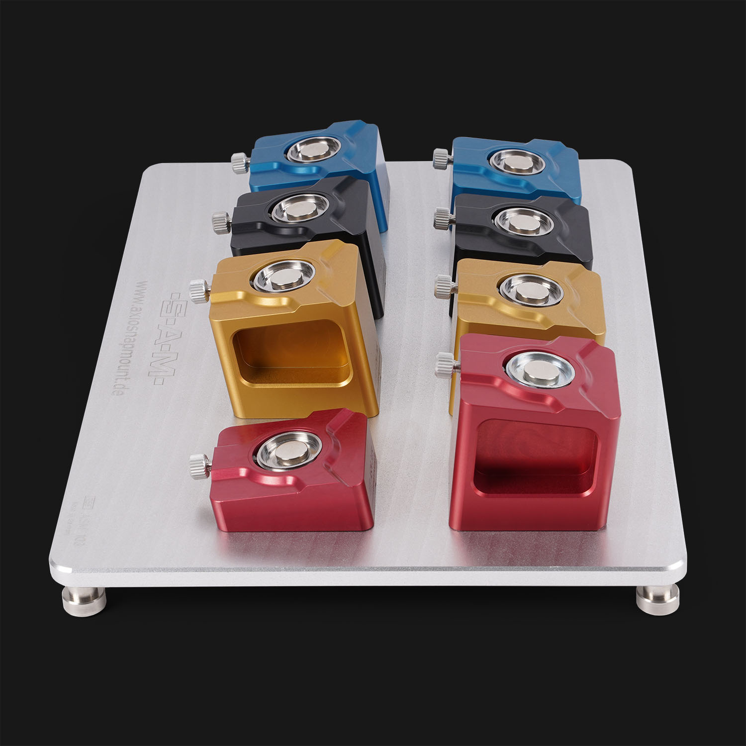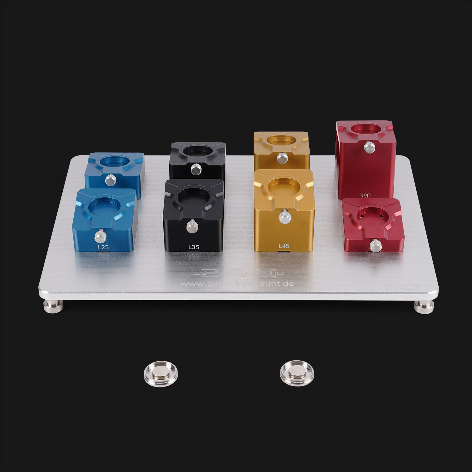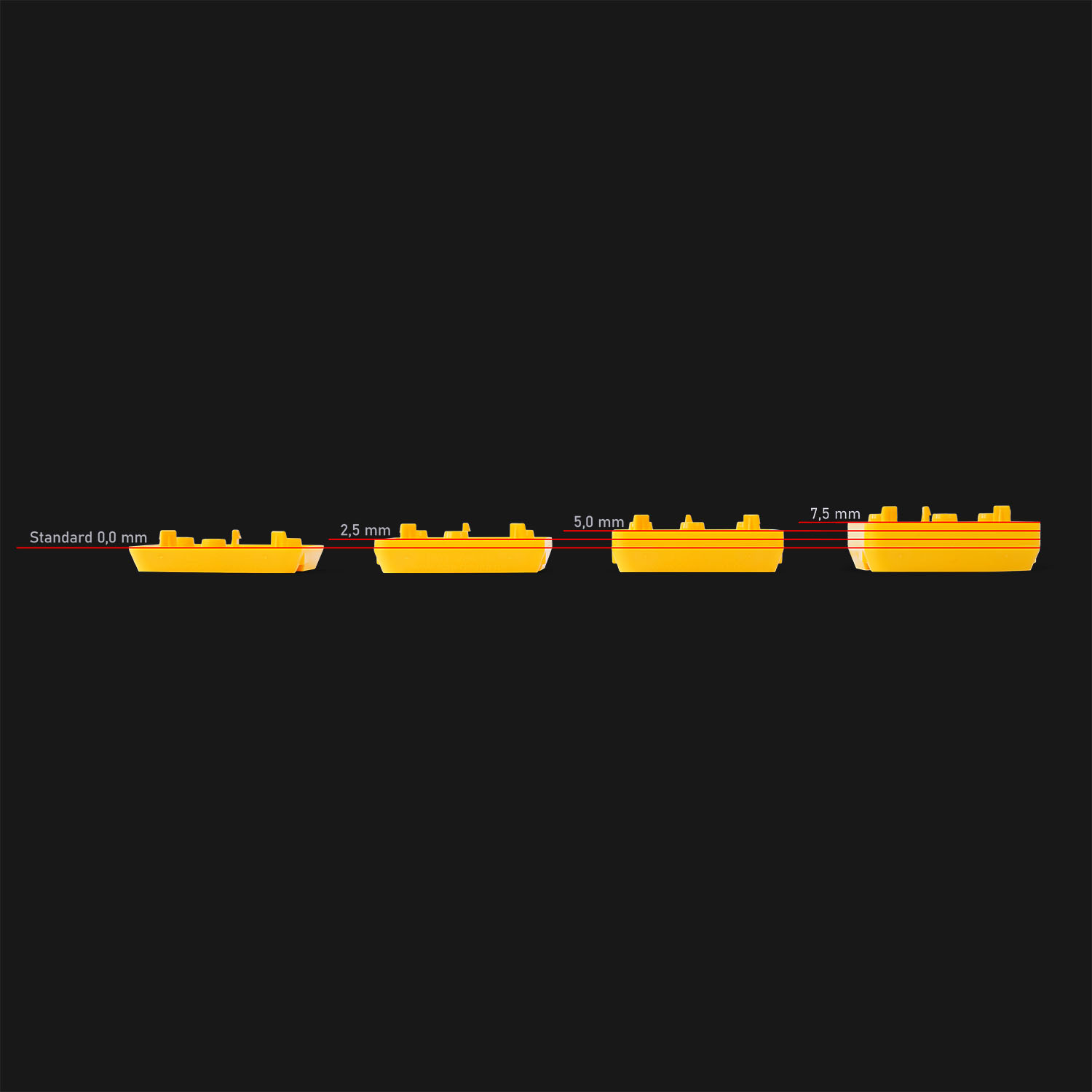 Je 5 Montageplatten in verschiedenen Höhen (+0,0mm, +2,5mm, +5,0mm, +7,5mm)