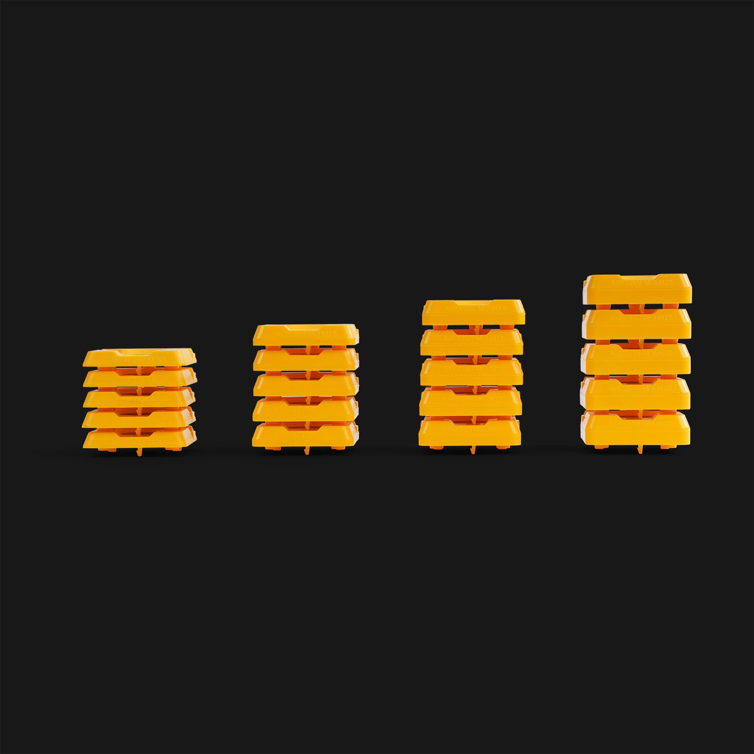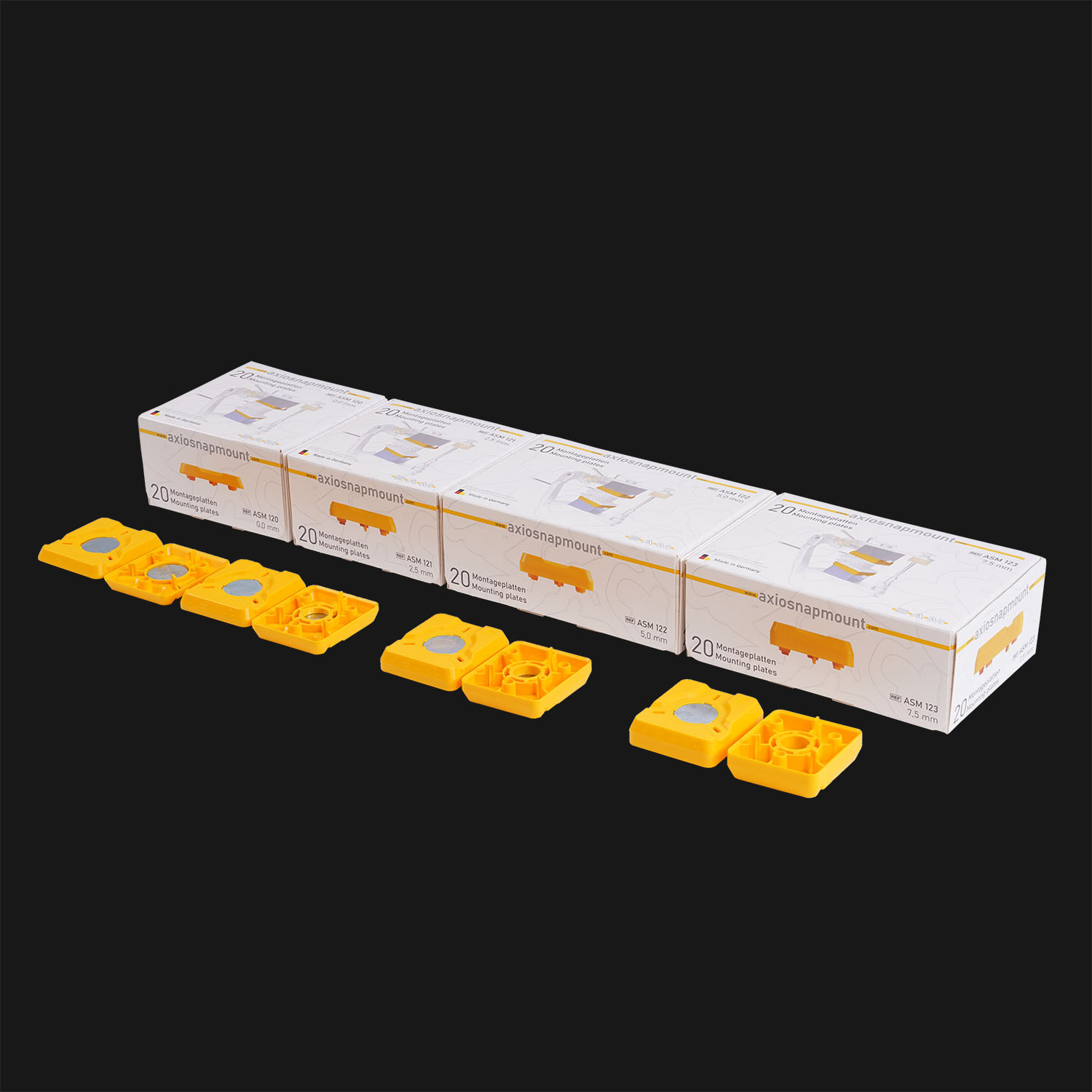 Je 5 x 20 Montageplatten in verschiedenen Höhen (+0,0mm, +2,5mm, +5,0mm, +7,5mm)